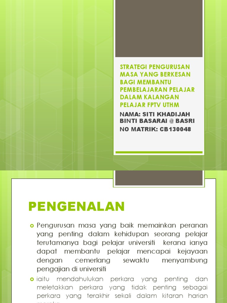 Menghargai masa kita dan orang lain slideshow. Mungkin ramai yang selalu dengar tentang pengurusan masa pada aku pengurusan masa satu mitos. Prinsip pengurusan masa berkesan unit 3 : Aset yang hilang bagaimana mengatakan 'tidak' mengatur masa perancangan jangka panjang. Pengurusan masa yang efektif adalah satu aspek pemangkin kepada kecemerlanganindividu atau sesebuah organisasi.